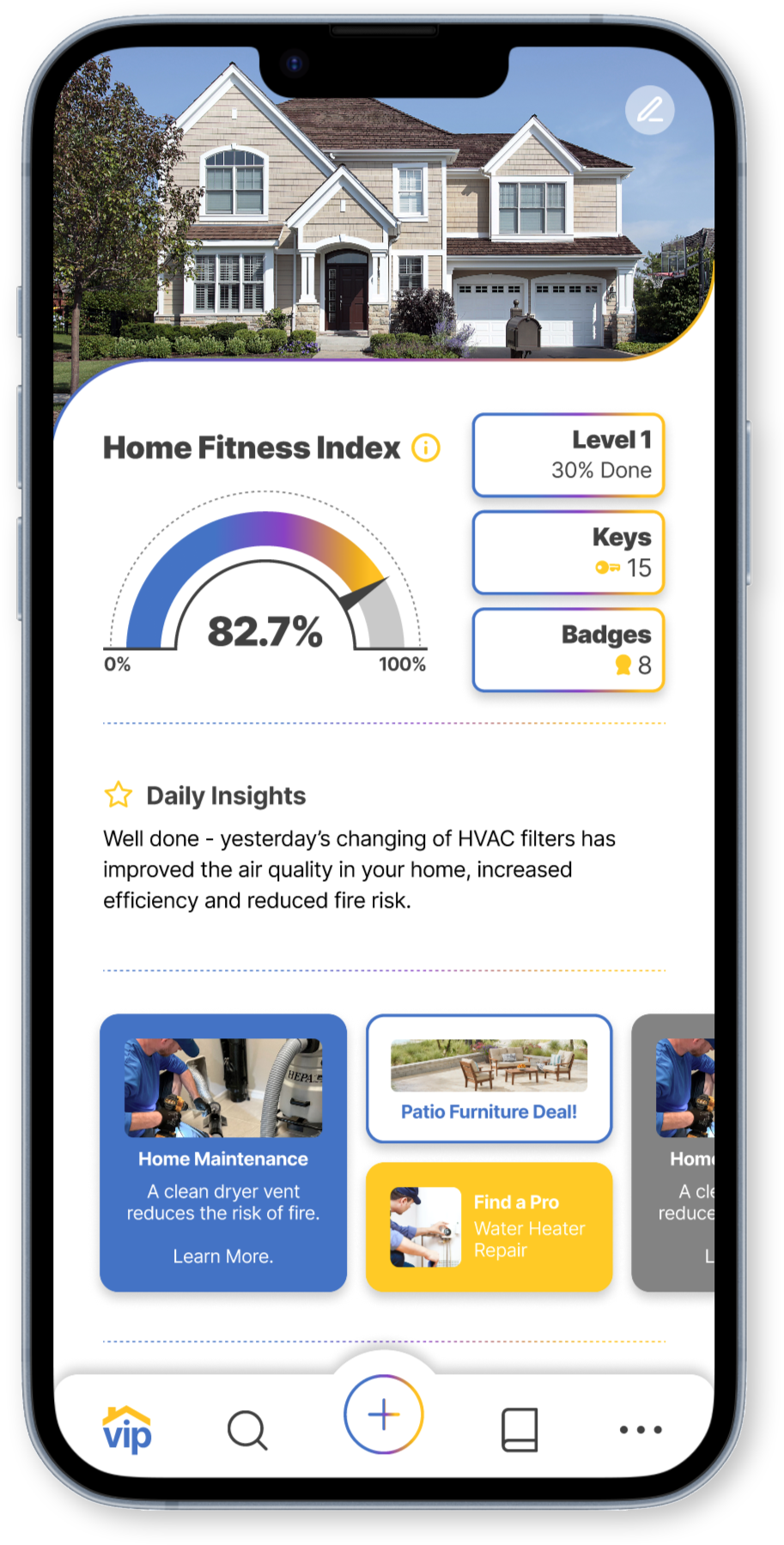 The pulse of your home. It displays how “fit” your home is, tracks improvement, and helps you feel more confident about your home’s safety.